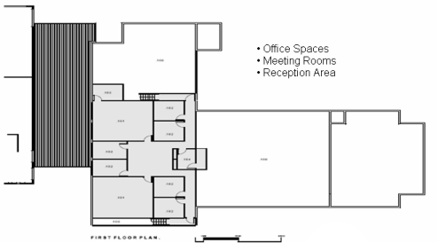 6 offices, 2 meeting rooms, a large bistro area with meals available